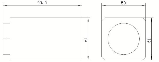 95,5 mm*50 mm*61 mm (124 mm*51 mm*56 mm met achterto bord) |